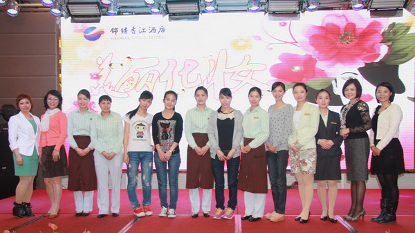 為了提高酒店整體形象,本次活動聘請了專業(yè)化妝團隊對酒店全體女員工進行化妝技巧培訓(xùn)。為加強培訓(xùn)效果,要求員工親自動手,現(xiàn)學(xué)現(xiàn)用,F(xiàn)場女員工個個動起手來,如雕刻藝術(shù)品般細心。學(xué)員自我化妝完成后,由化妝團隊老師統(tǒng)一評定化妝最美最好的學(xué)員,評出一二三等獎,現(xiàn)場頒發(fā)獎品。在現(xiàn)場,筆者甚至看到好幾位阿姨也興高采烈地化妝,不禁驚嘆,錦繡香江溫泉酒店有這么一批不斷完善自我的員工,怎一個“美麗”了得!