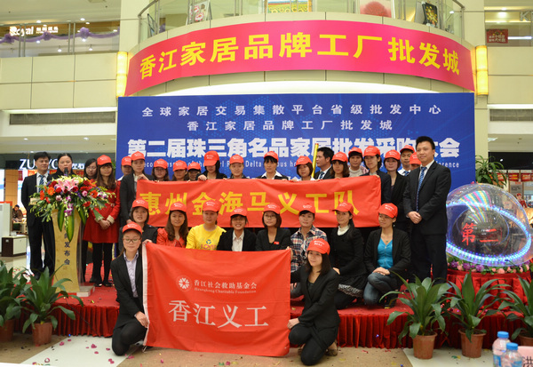 3月6號(hào),香江社會(huì)救助基金會(huì)惠州金海馬義工隊(duì)在惠州香江家居品牌工廠批發(fā)城一樓大廳舉行了成立儀式,數(shù)十家商戶及導(dǎo)購員參與了本次儀式;葜萑請(bào)、南方都市報(bào)、東江時(shí)報(bào)、惠州電視臺(tái)、惠州新浪樂居、西子湖畔等十多家本地主流媒體全程跟蹤報(bào)道了此次活動(dòng)。