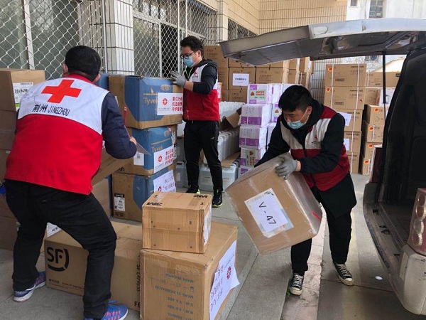 ↑來源:荊州紅十字會搬運(yùn)香江社會救助基金會捐贈的物資