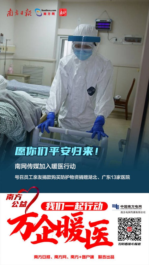 3月3日,南方日報(bào)、南方網(wǎng)、南方+客戶端正式啟動“萬企暖醫(yī)——我們一起行動”公益活動,旨在聯(lián)合社會力量用實(shí)際行動為奮戰(zhàn)抗疫一線醫(yī)務(wù)人員及家屬解難事、幫家事。同時(shí)發(fā)揮媒體平臺連接、傳播價(jià)值,匯聚社會力量為打贏疫情防控戰(zhàn)役貢獻(xiàn)廣東媒體力量。